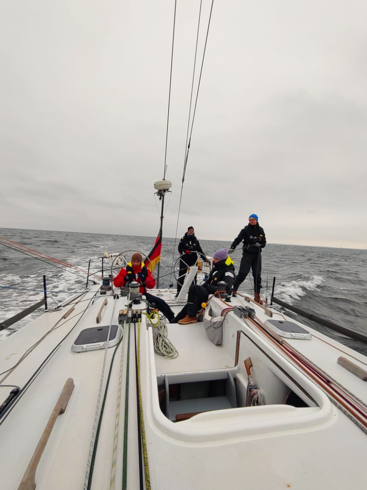 Um 1100 am nächsten Morgen verkündete der DSV-Skipper Jussi "Papa Up" - um 1105 würden wir starten. Vielen Dank an dieser Stelle für die professionelle Wettfahrtleitung! Der Start gelang uns dank Bende´s Idee, dass wir aus der Schleimündung von oben in die Startlinie eintauchen, sehr gut. Der weitere Kurs erforderte viele schnelle Manöver mit Segelwechseln von der G2 auf den A3, auf die G3 und wieder zurück, die die Vorschiffscrew zum Schwitzen brachten. Insgesamt hatten wir viel Spaß, haben eine Menge gelernt und konnten uns sogar am Ende auch berechnet über einen Sieg freuen.
