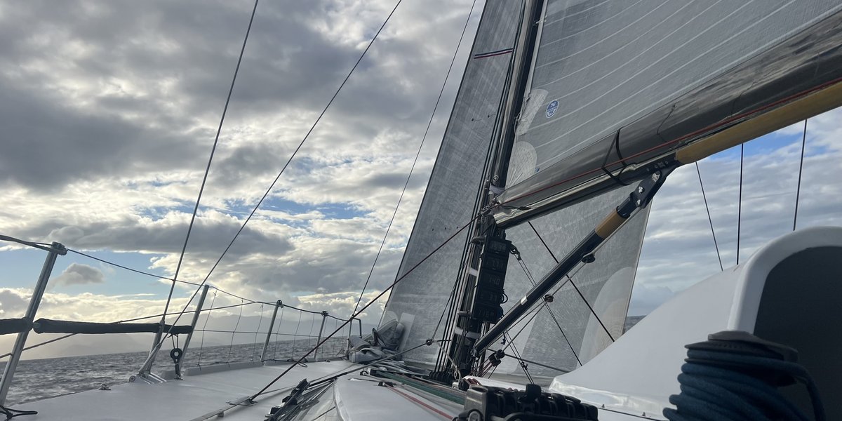 | 2025Wir kommen supergut voran... bisher hat Lorenz, unser Navigator, es hervoragend geschafft, uns fernab von allen Flautenlöchern zu halten und wir haben nie weniger als 220sm als Etmal zu verzeichnen. Diese Nacht waren bei Böen bis 23 Knoten unter Groß und A6 wieder Geschwindigkeiten bis zu 18-19 kn dabei - und das alles…